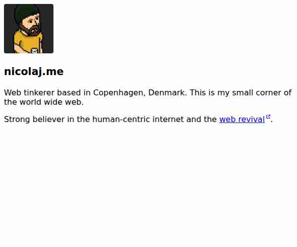 Personal website of Nicolaj Gajhede, a web tinkerer based in Copenhagen, Denmark. Exploring the human-centric internet and web revival.