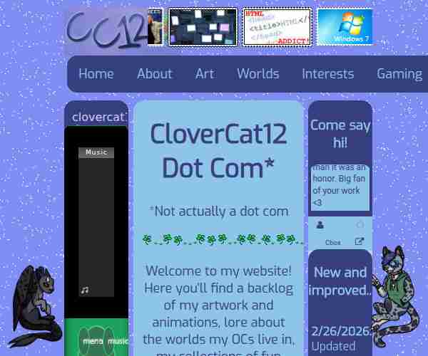 Homepage of a personal site for original characters, original writing, and Hatsune Miku Project DIVA.